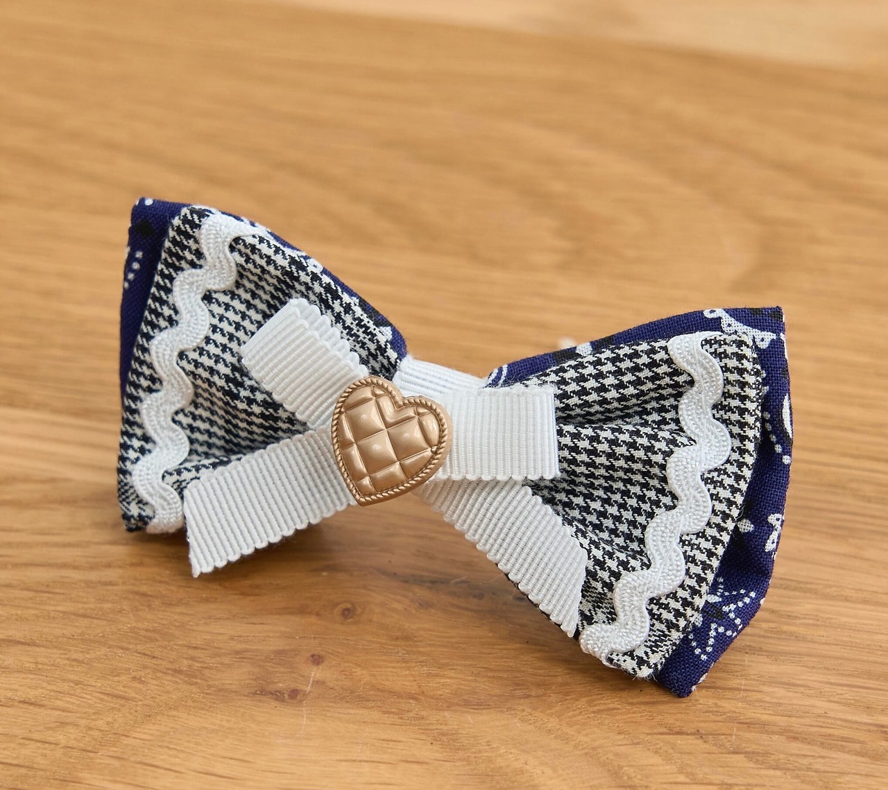 グランチェック×ネイビーペイズリーのおリボン。