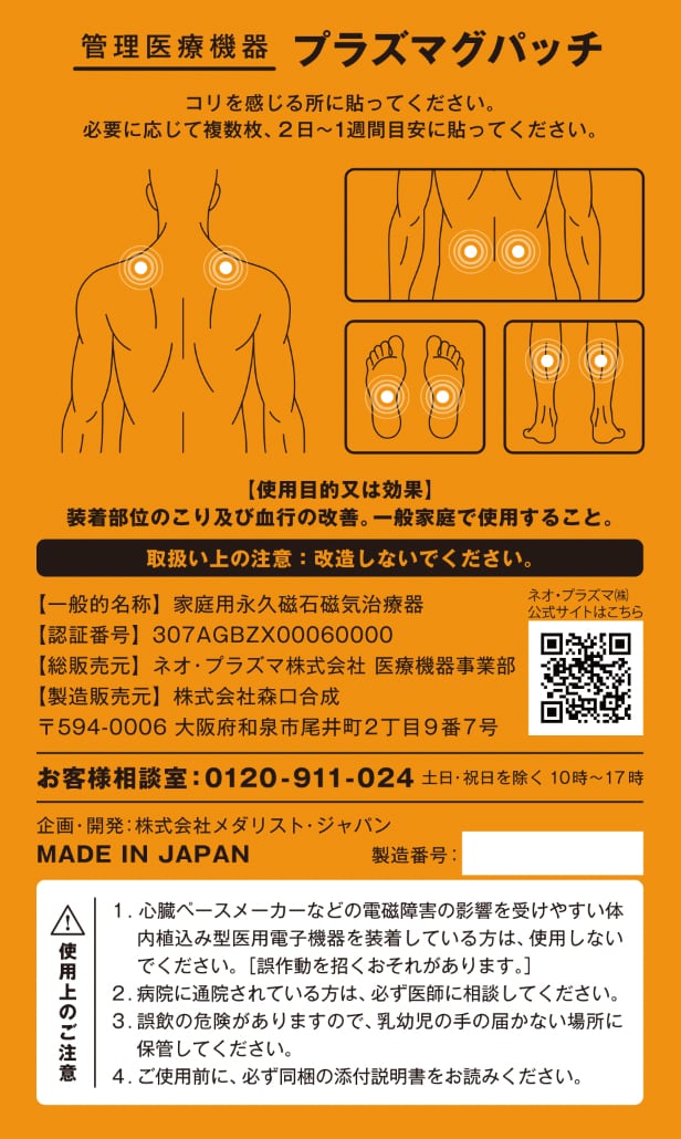 ◆ 磁束密度120mT|貼るだけで血行促進・コリ緩和