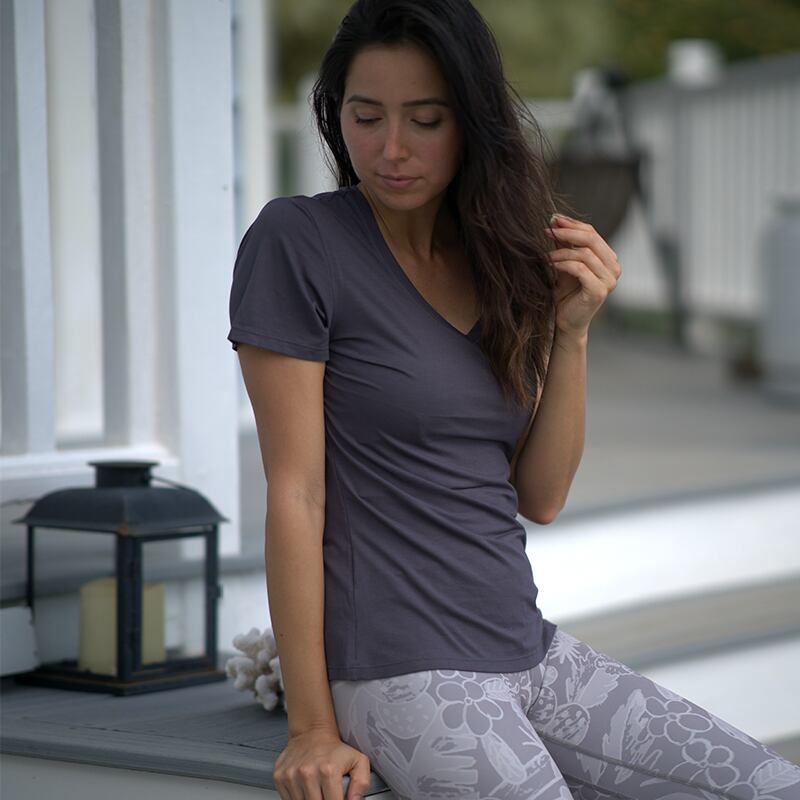 レアマカハ/VネックTシャツ/ディープグレー・モカ