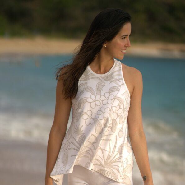 女性らしいボディラインを引き立てる、オープンバックタンクトップ
