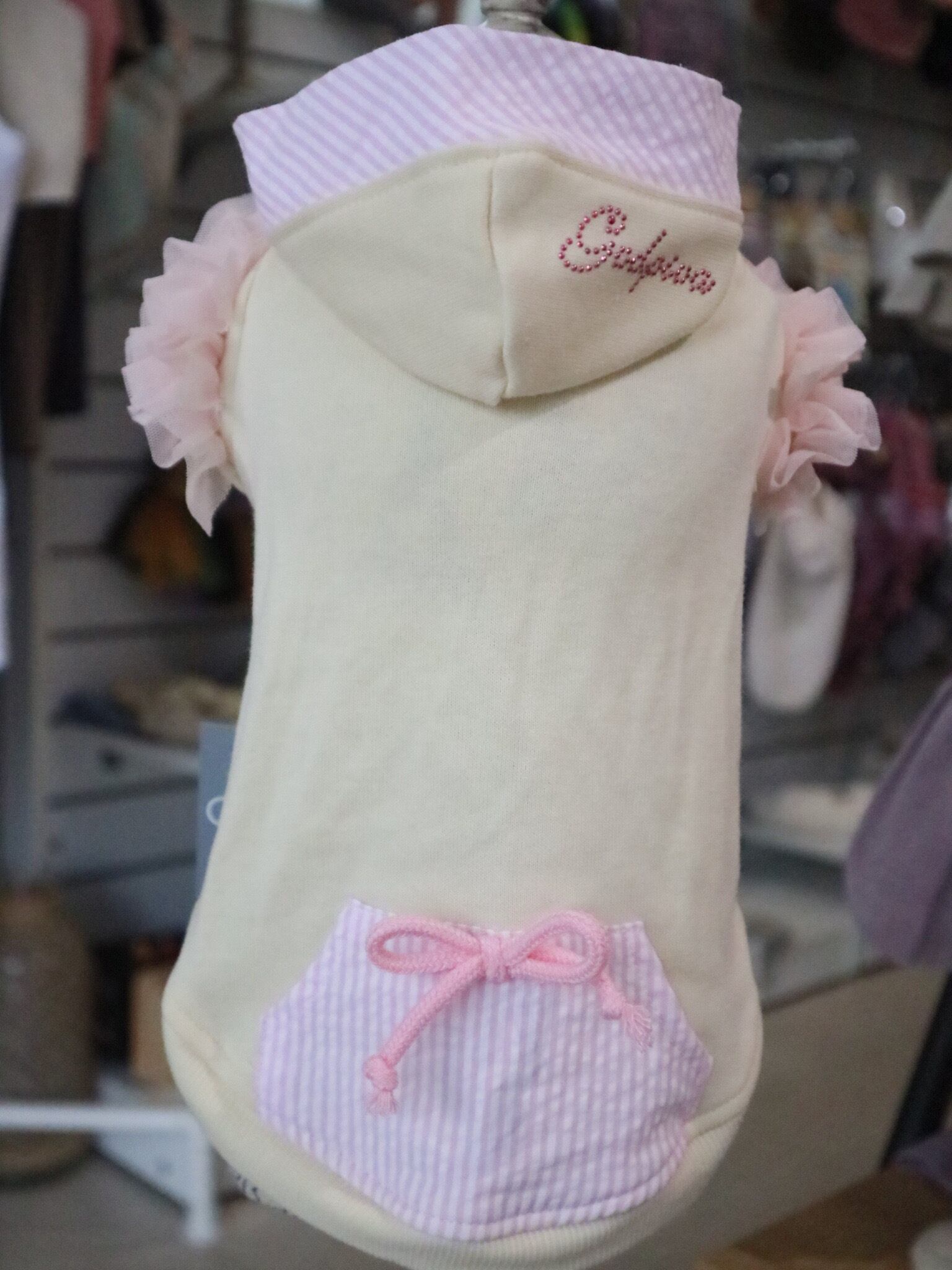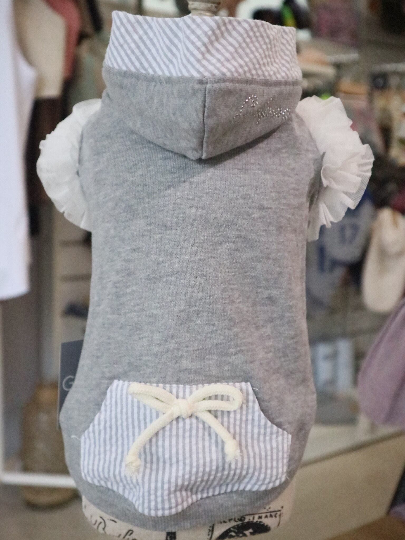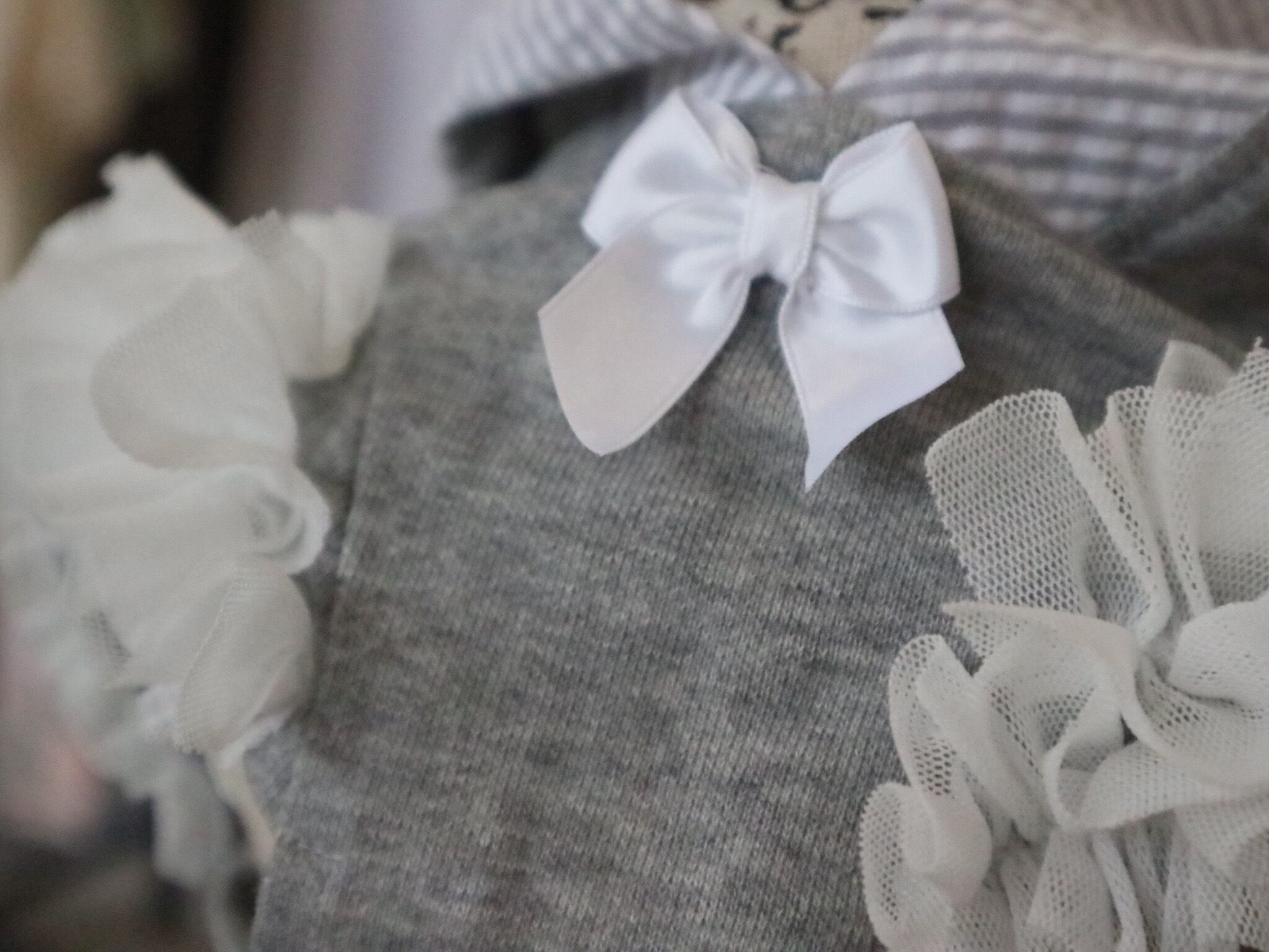 ミニ裏毛素材のパーカーに、チュールをふんだんに使用したお洋服。