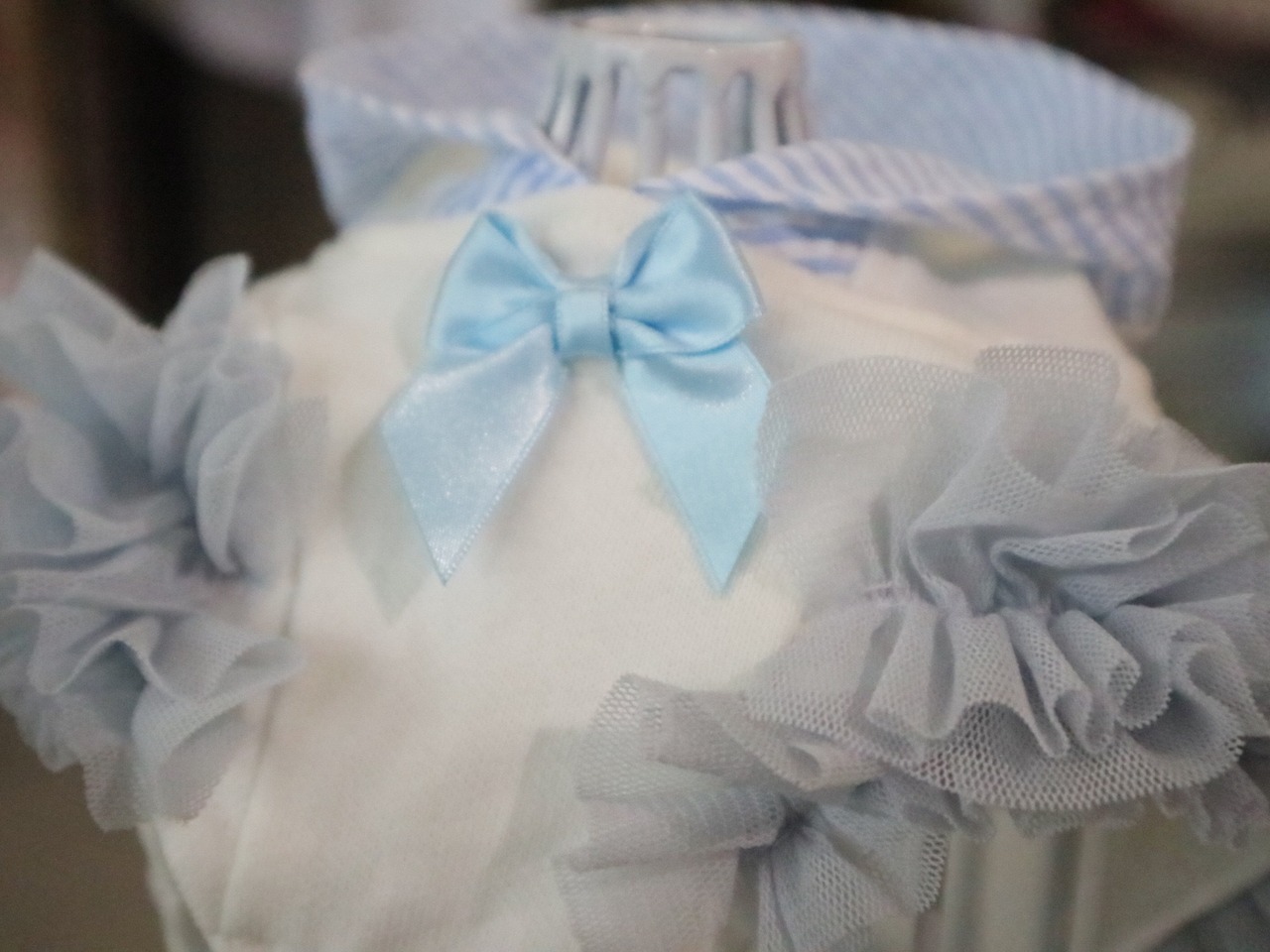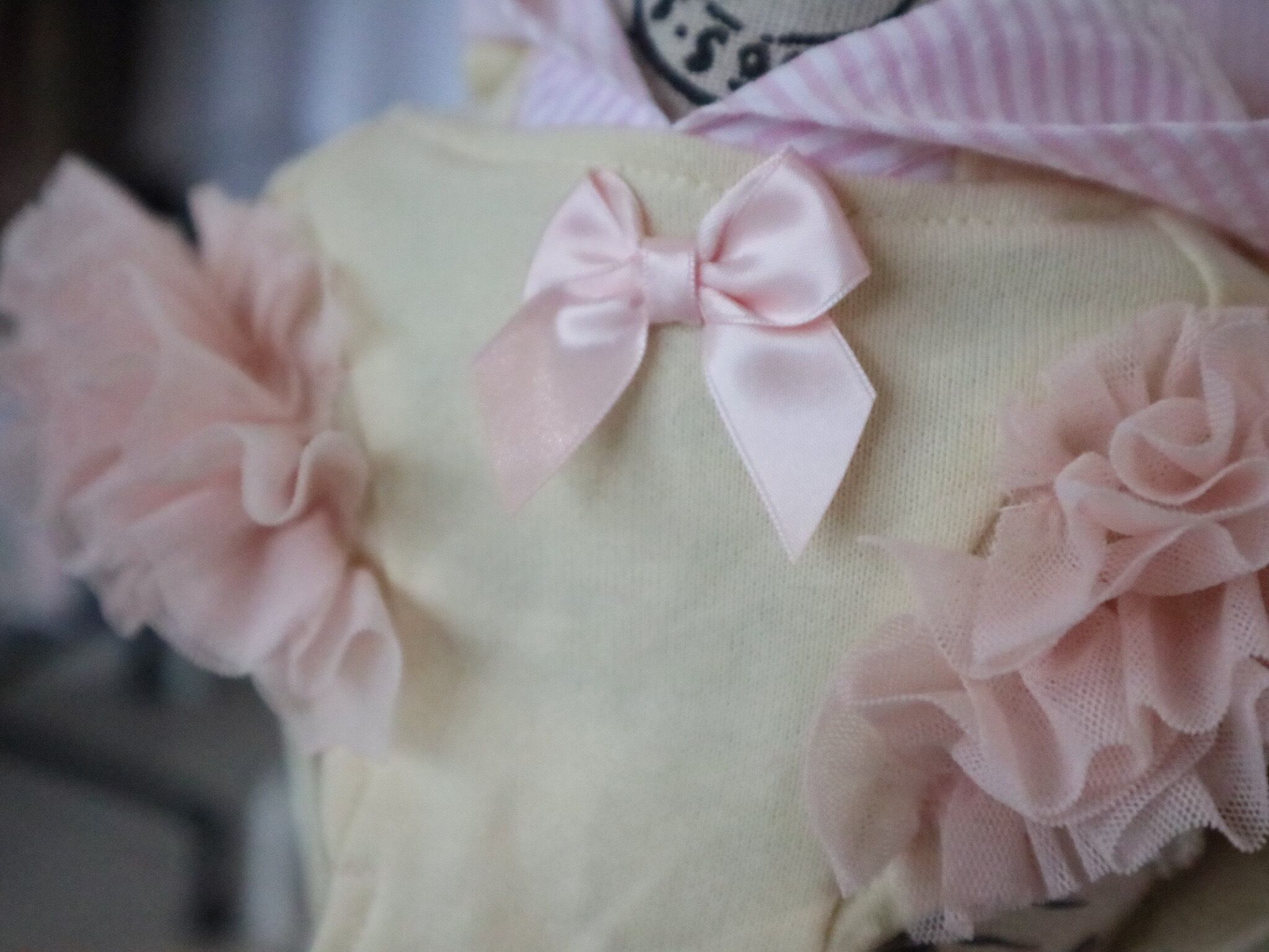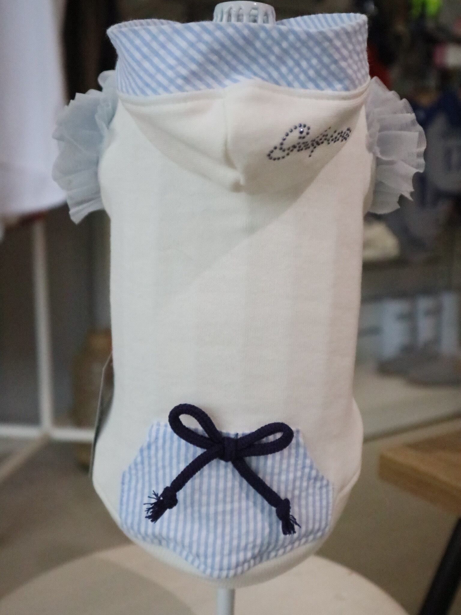 ミニ裏毛素材のパーカーに、チュールをふんだんに使用したお洋服。