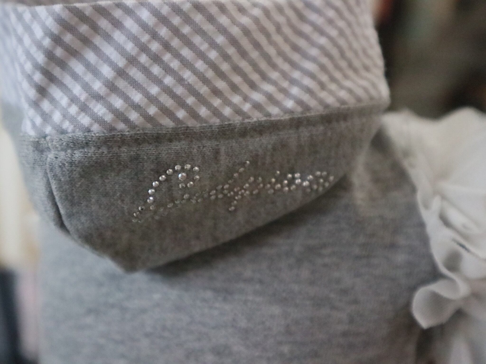 さりげないストライプ生地のアクセントが、全体の印象を引き締め甘さの中にも程よいおしゃれ感をプラス。