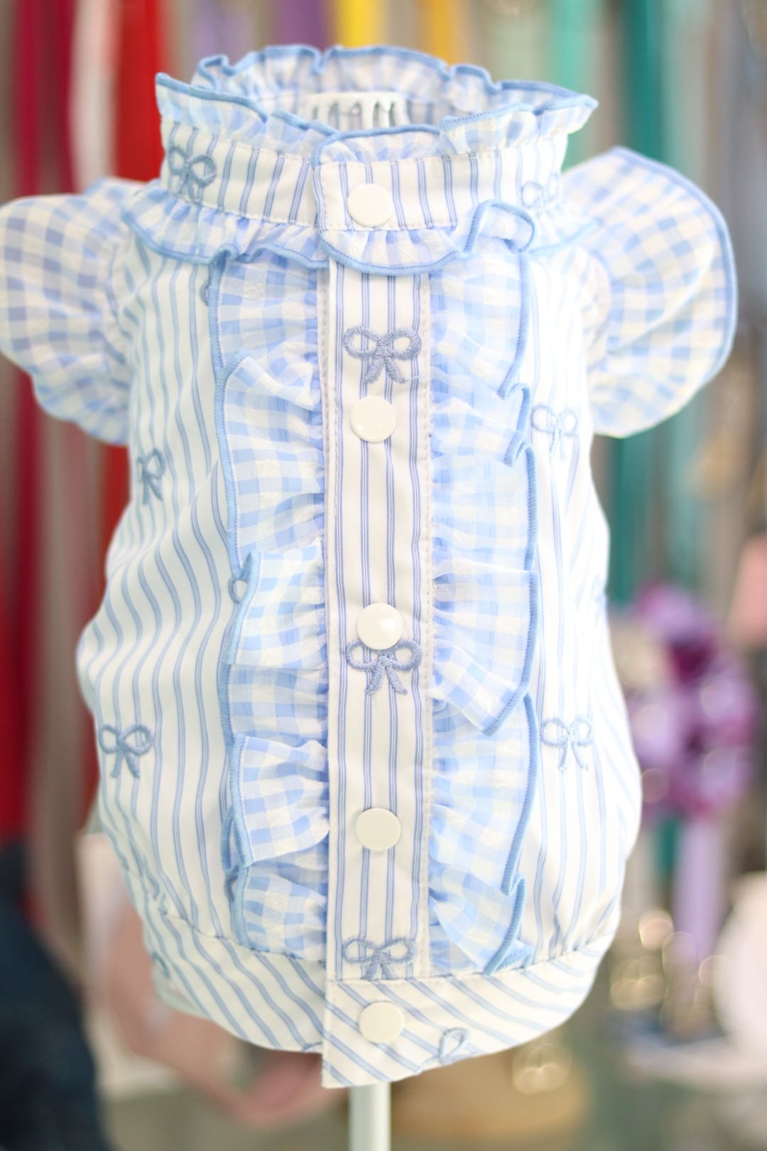 涼しげストライプ×リボン刺繍が目を惹く